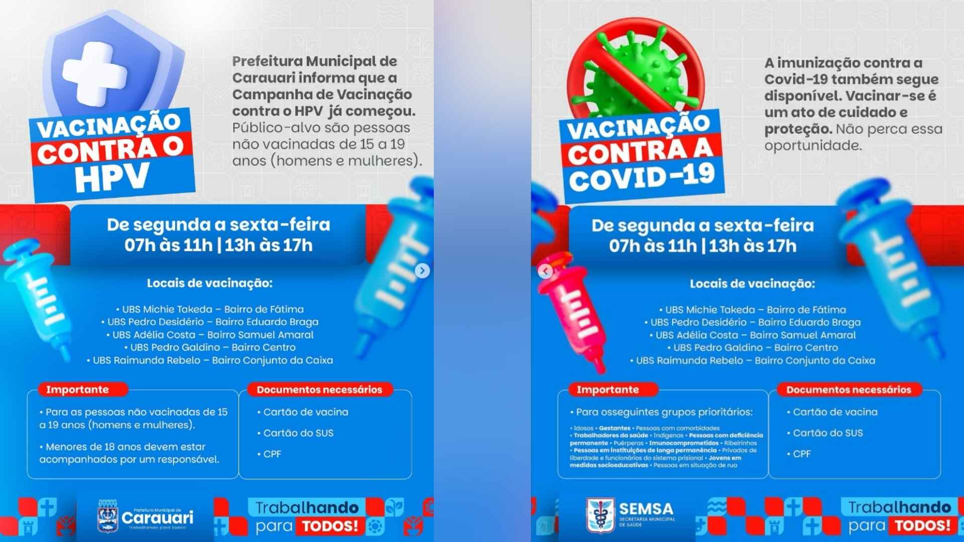A Prefeitura Municipal de Carauari informa que a Campanha de Vacinação contra o HPV e a Covid-19 já começou! Proteja-se